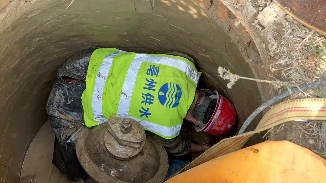 由于正值雙休日,小區(qū)和周邊商場(chǎng)用水需求很大,閥門(mén)關(guān)停后搶修人員立即組織抽水檢查,發(fā)現(xiàn)漏點(diǎn)位置位于閥門(mén)與伸縮器連接處,由于該處漏點(diǎn)靠近閥門(mén)井壁,人工破除難度大、時(shí)間長(zhǎng)。為盡量縮短停水時(shí)間,現(xiàn)場(chǎng)人員當(dāng)機(jī)立斷,緊急調(diào)用機(jī)械進(jìn)行開(kāi)挖,在開(kāi)挖過(guò)程中搶修人員發(fā)現(xiàn)閥門(mén)井周邊交通信號(hào)燈、路燈等電纜線縱橫交錯(cuò),情況復(fù)雜,為保障其他市政設(shè)施安全,搶修人員精力高度集中,指揮機(jī)械避開(kāi)所有障礙進(jìn)行開(kāi)挖,并結(jié)合人工開(kāi)挖輪流作業(yè),用兩個(gè)多小時(shí)時(shí)間將漏點(diǎn)開(kāi)挖出來(lái)。隨后,維修人員立即對(duì)破損配件進(jìn)行切除,用搶修哈夫節(jié)進(jìn)行連接,成功修復(fù)了漏水點(diǎn),最終經(jīng)過(guò)了6個(gè)小時(shí)的搶修,周邊恢復(fù)了正常供水。搶修人員回家時(shí)雖是萬(wàn)家燈火,晚飯也沒(méi)顧得吃,但能在周末為群眾用水提供保障,搶修人員心里充滿了成就感、幸福感。